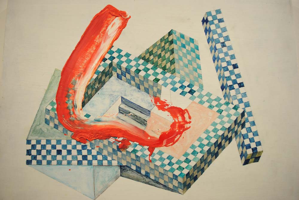DIP IN THE POOL . Year: 2014. Size: around 100cm wide, 80cm tall and sticks out from the wall around 50cm Medium:Oil on Board