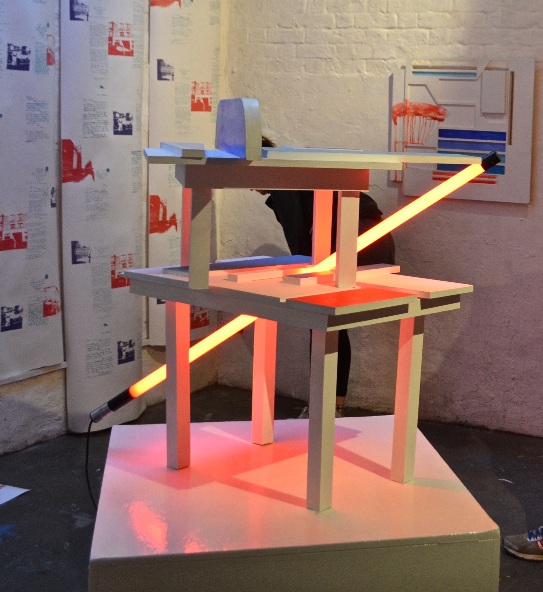 For this project I created functional art objects inspired by common household fixtures and furniture. The pieces predominantly are made from wood off cuts to create 3D collages; pre-formed shapes that serve no purpose, which are then reconstituted into new functional objects.